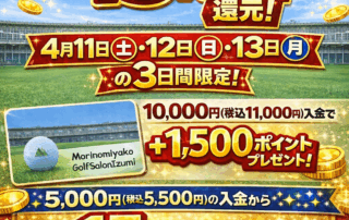 🔥3日間限定🔥 【4/11~13】 💰5,000円以上チャージで 👉15%増量!! 年に2回だけの大変お得な期間になります。 是非ご利用ください。 さらに会員になると ✅1球2円お得 ✅打ち放題300円OFF ✨今がチャンス!一番お得なタイミングです💳✨